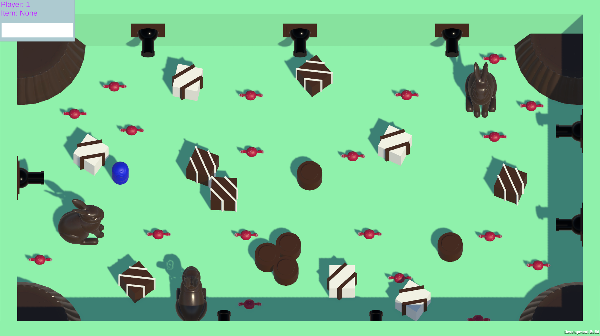 We also discovered many bugs. Most did not occur while playtesting but during internal tests we discovered. This includes the killer cat being able to be flung off the map if a player comes up from behind and runs into them, this flings both players off the map. Then there was the issue of if a player was huddled right next to a prop when the killer cat touched them, they would not get flung away. They would be completely fine. The Caramel power-up didn't function properly and when it was used it would for some reason the effect would spawn under the map.