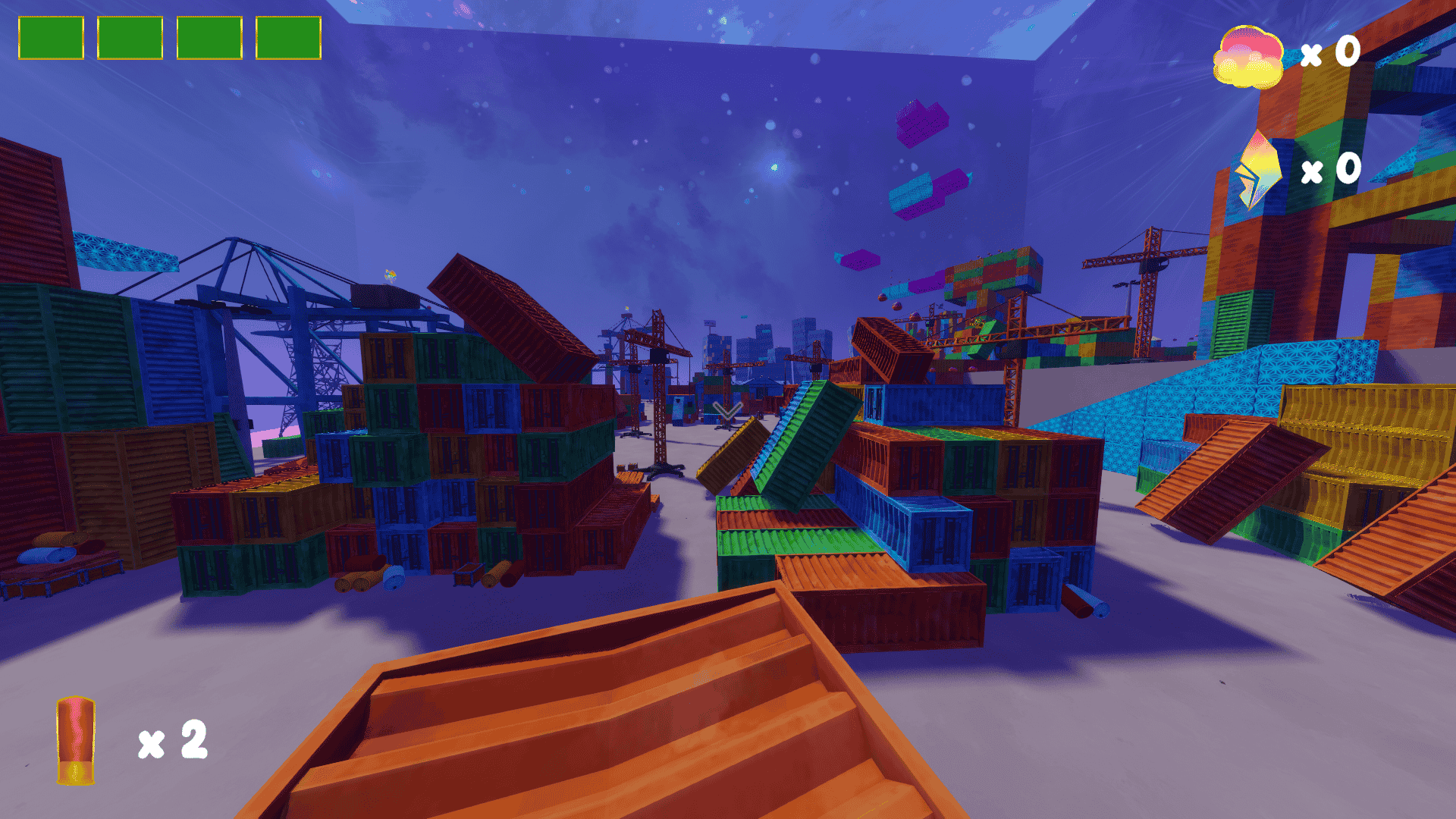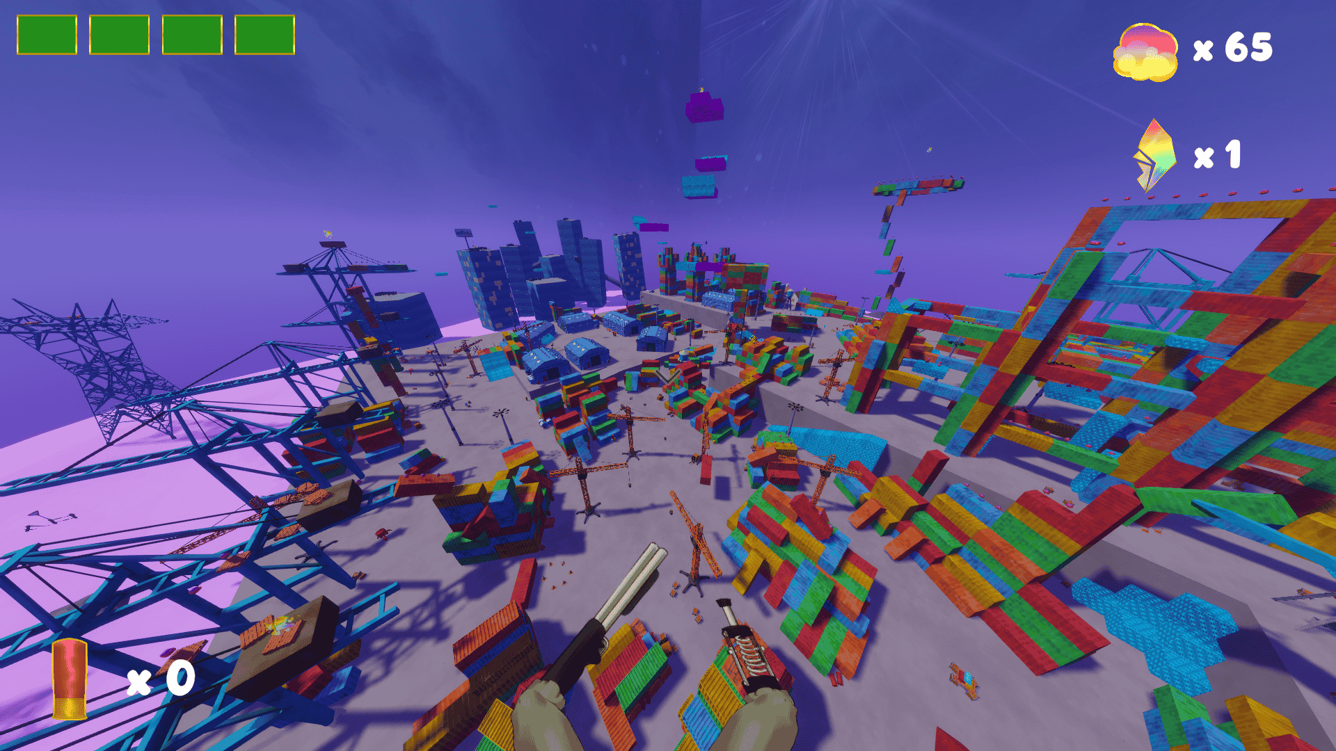 After being banished by an evil dream wizard to an odd dimension in the sky, you will explore oddly familiar environments to recover your fragmented memories. Using your pogo leg to bounce around, and various different guns to help dispatch enemy robots. Collect all the memory fragments to break the wizard’s curse and wake up!